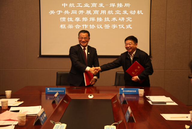 2016年3月8日,何實(shí)所長(zhǎng)帶領(lǐng)哈焊所摩擦焊專家團(tuán)隊(duì),與中航商發(fā)馮錦璋副總經(jīng)理帶領(lǐng)的代表們,就共同開展商用航空發(fā)動(dòng)機(jī)慣性摩擦焊接技術(shù)研究合作事宜、寬體客機(jī)發(fā)動(dòng)機(jī)壓氣機(jī)部件合作事宜以及針對(duì)寬體客機(jī)相關(guān)部件聯(lián)合申請(qǐng)國(guó)家項(xiàng)目支持等議題進(jìn)行了深入的交流與協(xié)商。雙方就共同開展商用航空發(fā)動(dòng)機(jī)慣性摩擦焊接技術(shù)研究合作事宜達(dá)成充分共識(shí),共同簽署了框架合作協(xié)議。